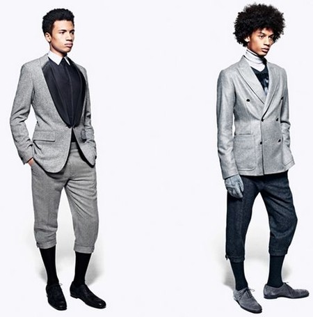 Также будут актуальны брюки прямого кроя, укороченные снизу. Такая тенденция уже несколько сезонов подряд в моде в дамском гардеробе, а теперь с полной уверенностью перебралась и в мужской. Особенно смелые решения представлены в коллекции Alexander McQueen – дизайнеры предлагают носить молодым людям короткие брюки, похожие на панталоны денди девятнадцатого века.
