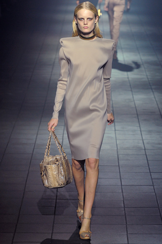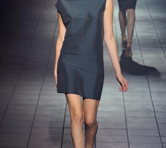 Такой же v-образный вырез, который станет в этом сезоне трендовым, украшал и невероятно женственные ансамбли, выполненные исключительно в сером цвете от Donna Karan.
