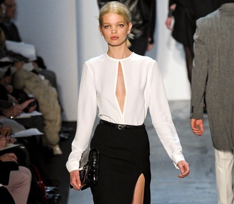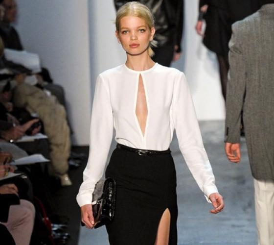 Невероятно элегантно и соблазнительно смотрится ансамбль от Майкла Корса: юбка с высоким разрезом и белоснежная блуза с вырезом подчеркнет женственность и даст уверенность в своей привлекательности.