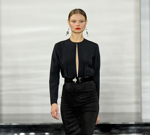 Классикой жанра по-прежнему остается блузка и юбка-карандаш или строгие брюки. Так, у Ральфа Лорена – это черная блуза и обтягиваюшая юбка до колена, у Донны Каран – юбка-карандаш серого цвета прозрачная блуза или блузка из атласа с декоративными оборками.