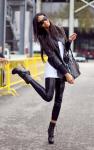 Ну и, естественно, актуальным остается сочетание лосин и леггинсов с футболками. Такой наряд является классическим, он идеален и для шоппинга, и для занятий спортом, и для ночных вечеринок. Для дискотек, кстати, очень хорошо подойдут лосины под кожу и туфли на высокой шпильке.