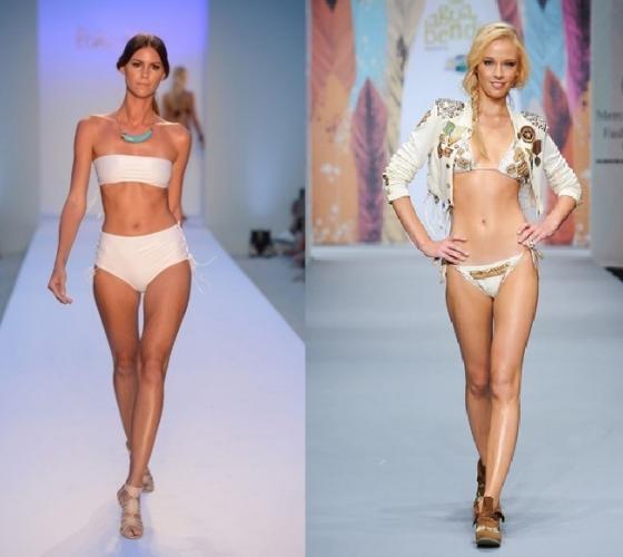 Нужно избегать моделей купальников с низкими вырезами по бедрам, а также плавок-шортиков, они сделают ваши ноги еще короче. Также не следует носить бикини и очень узкие плавки, чтобы не создавать горизонтальных линий на вашем силуэте.