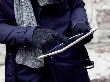 Есть производители (компания Mujjo — один из них), которые делают специальные перчатки для работы с емкостными сенсорными устройствами. Раскрываю секрет – они связаны из ниток с вплетением проводниковых волокон (с серебряным покрытием). Кроме того, что перчатки хорошо сохраняют тепло, они усиливают взаимодействие с сенсорным экраном – телефон или планшет становятся «чувствительнее» к касаниям (конечно, если сравнивать с прикосновением в простых перчатках, а не голой рукой).