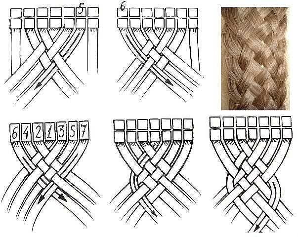 Плетение косы из пяти прядей в картинках