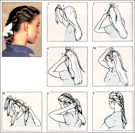 12. Уложите вторую косу над третьей косой, формируя корзинку, и закрепите положение этой косы.Учимся красиво плести косы