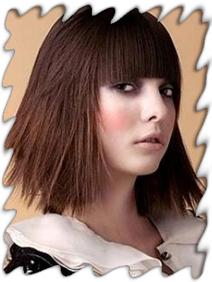 Стрижка на средние волосы для круглого лица: косая челка на бок