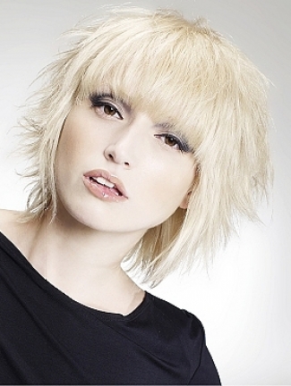 Стрижка на средние волосы для круглого лица: косая челка на бок Превосходно смотрится асимметричная стрижка на средние волосы для круглого лица, а также стрижка с косым пробором и неровной челкой. Если вам идет короткая челка, не забывайте прикрывать уши волосами, короткая челка и открытые уши расширяют лицо. Если вы хотите сделать стрижку по линии подбородка - макушка в прическе обязательно должна быть приподнятой! |