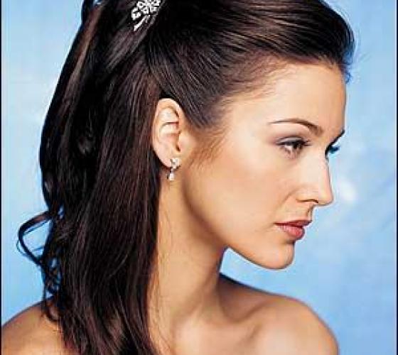 Волосы средней длинны более требовательны к прическе. Но здесь и простора для фантазии достаточно много. Одной из популярных и простых причесок на каждый день является, конечно, собранные в пучок волосы. При этом волосы можно заколоть при помощи шпилек в разные замысловатые узлы. Смотрится такая простая прическа (см. фото прически на праздник ) оригинально и необычно. Можно оставить «хвост» не закрученным, украсив его красивой заколкой.
