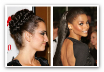 1. Ракушка. По времени создание такой прически занимает 3 минуты. Для начала нужно тщательно вымыть волосы, высушить с помощью расчески и фена. Затем наносим на волосы гель и расчесываем пряди. Из волос собираем обычный «конский хвост», но у его основания, между резинкой и корнями волос, разделяем волосы на две равные пряди. В получившееся отверстие между волосами пропускаем часть хвоста, которая ниже резинки. Вот и вся прическа. Можно добавить украшения в виде небольших заколок в форме цветков роз или прекрасных лепестков. Чтобы пряди выглядели стильно и аккуратно необходимо выбирать резинку подходящую под цвет волос.