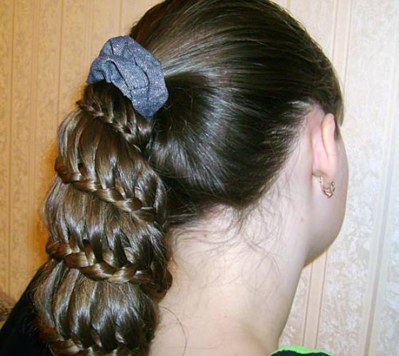 Коса из 4 прядей бывает обычной(висящей внизу затылка), ее можно заплетать от высокого конского хвоста, в виде колоска, а если заплести(см. на фото плетения косичек из волос) ее на тонкой отдельной прядке, то можно использовать как «ленту» для оборачивания хвоста, пучка и т.п. При помощи украшений и атласных ленточек ее можно превратить в настоящее произведение искусства. Ну а сегодня рассмотрим самый простой вариант ее плетения.