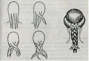 4. Взять четвертую прядь и завести ее под первую(которая находится по центру)