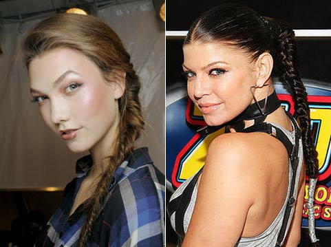 Тонкая косичка. Гладкая тонкая классическая косичка остается невероятно модным дополнением прически. Существует множество способов разнообразить весенне-летнюю прическу – украсить двумя тонкими косичками конский хвост, как на показах Марчеза, уложить косичку от уха до уха как ободок, как предложила Холли Фултон или даже оформить ей нижний край волос.