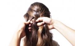 1. Возьмите прядь волос, где будет начинаться ваша коса. Чаще всего коса «рыбий хвост» начинается с линии роста волос, возьмите прядь по центру и разделите ее на две равные части. Тщательно расчешите их, убедитесь, что волосы нигде не запутаны.
