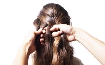 4. Повторяйте шаги 2 и 3 попеременно. Обязательно равномерно натягивайте каждую прядь волос по мере плетения. Плетите, пока не дойдете до линии роста волос возле шеи (на затылке).