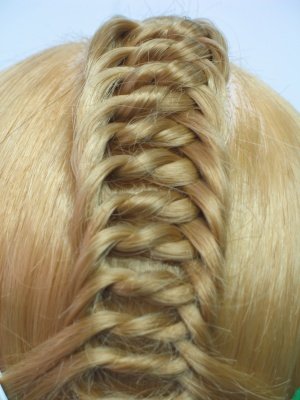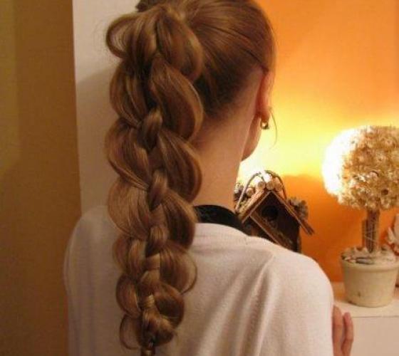 4. Заканчивают плетение у шеи, продолжая его в виде обычной косы или закрепляя волосы в хвост.