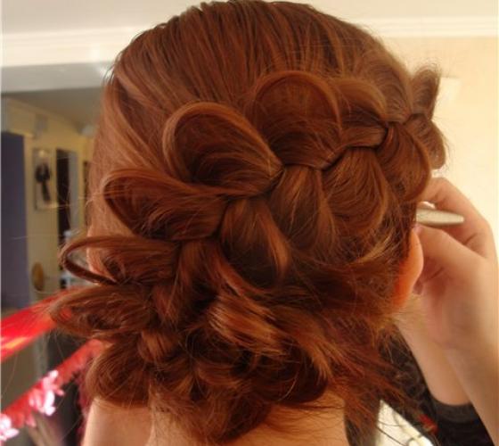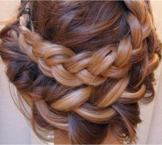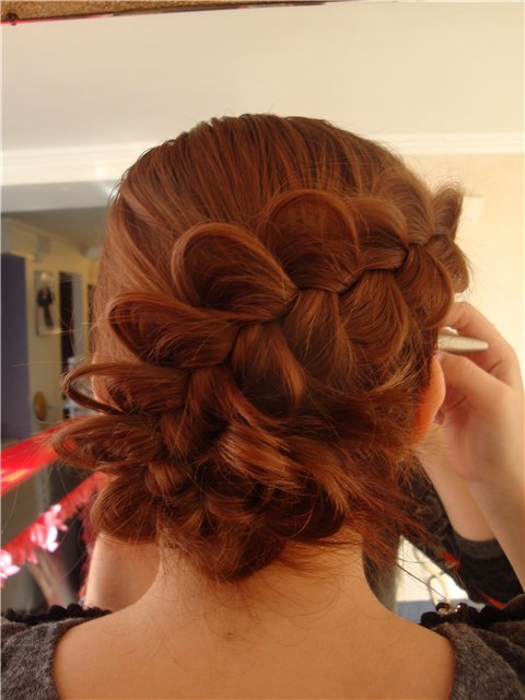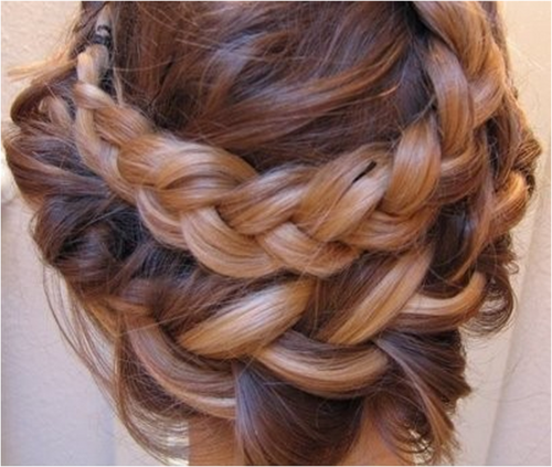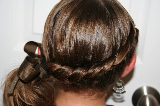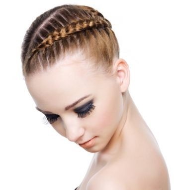 Ещё одна прическа, очень популярная у занимающихся спортом или бальными танцами девушек – венок из «полуколоска». Его начинают плести с макушки, добавляя прядки с внешней стороны, и, двигаясь по спирали, делают два-три оборота вокруг головы.