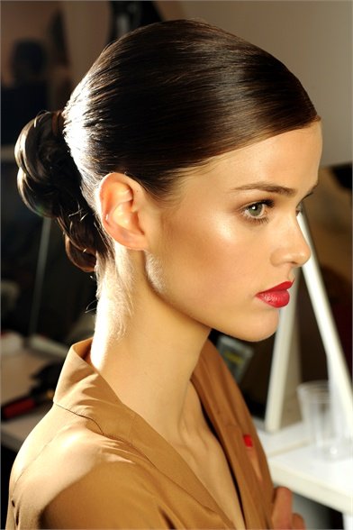 Если ваш тип лица "круглый" или "треугольный", то вам подойдут длинные прямые пряди, которые визуально сделают скулы менее широкими. Кроме того, прямые волосы – это очень модно. Используйте кондиционер, не требующий смывания, и разглаживающий крем. Нанесите кондиционер на мокрые волосы, расчешите и посушите до слегка влажного состояния, разотрите небольшое количество крема в ладонях, распределите по волосам от уровня ушей вниз и сушите пряди феном с помощью плоской щетки. Но наиболее эффективно будет использовать для выпрямления волос стайлер. Не забывай защищать волосы! Гладкие волосы на показах: D&G, Fendi, Roberto Cavalli.