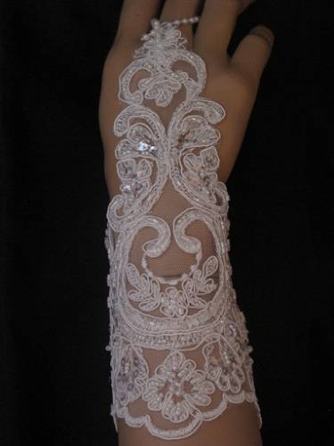 В свадебной моде по-прежнему актуальны свадебные перчатки любых фасонов и любой длины(см. на фото), доходящие до запястья и выходящие за локоть. Выбор свадебных перчаток зависит от модели платья, а общий принцип действует такой: чем короче рукава платья, тем длиннее должны быть свадебные перчатки. Материал перчаток по фактуре и цвету выбирают идентичным материалу свадебного наряда. Красивые свадебные перчатки служат невесте достойным украшением. Если наряд не перегружен другим декором, предпочтительны свадебные перчатки с выразительной аппликацией из кружева, атласных лент или перьев, с металлическими вензелями, блестящими стразами из стекла или жемчуга. Поверх голой белой свадебной перчатки, как и поверх обнаженной руки, можно надеть браслет в виде цветочка на руке, специальную свадебную бижутерию – браслеты-бутоньерки.