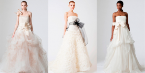 В летнем сезоне известные дизайнеры «оторвались» на отделке свадебных платьев. Одни закутывали невест в облака органзы. Другие – драпировали свадебные наряды шелком, превращая невест в греческих богинь. Третьи наряжали невест в полупрозрачные платья с многочисленными складками - словно нимф, вышедших из пены морской. Но самые модные платья – это пышные конструкции с кринолином и корсетом. А теперь опишем их подробнее.