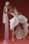 Так, например, американский дизайнер Оскар де ля Рента в своей новой свадебной коллекции предложил, пожалуй, идеальную версию красивого короткого свадебного платья: романтический наряд из нежного бело-розового кружева с цветочной вышивкой, основу силуэта которого составило сочетание обтягивающего, корсетного верха и короткой, но пышной юбки. Нетрадиционный свадебный наряд дополняет своеобразная накидка из почти прозрачного белого тюля, создающая иллюзию определенной закрытости платья.