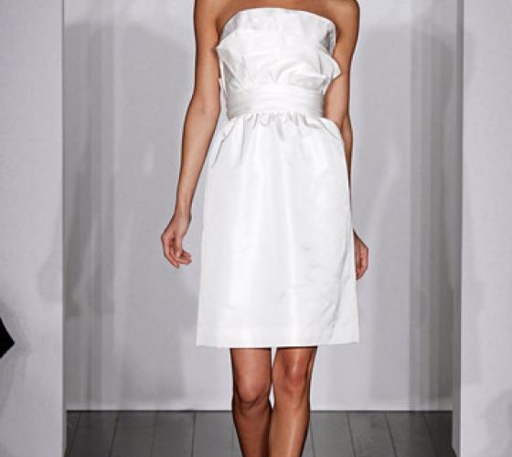 В то время как в коллекциях pret-a-porte сезона весна-лето модные дизайнеры практически единогласно уделили наибольшее внимание длине макси, свадебные платья нового сезона, наоборот, значительно потеряли в длине. Короткие свадебные наряды в своих новых коллекциях предложили самые авторитетные представители мира моды – от Marchesa до Оскара де ля Рента. Интересно, что оригинальные решения для свадебной моды предложили даже дизайнеры, практически никогда не выходившие за рамки традиционных свадебных ансамблей – например, Вера Вонг, в новой коллекции которой можно встретить и цветные свадебные платья, и модные короткие свадебные платья, романтические наряды.