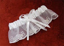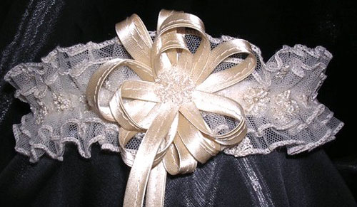 Совет девушкам при выборе подвязки: подвязка должна по цвету гармонировать с чулками и туфлями. Как правило, подвязка белого цвета, реже красного. Сейчас большой выбор подвязок. Вы можете украсить ее бусинками, кружевами, стразами, бисером. Если у вас платье не чисто белого цвета, а присутствуют другие цветовые оттенки, то можете подобрать подвязку тоже не чисто белую, а с цветными вставками в тон платью.