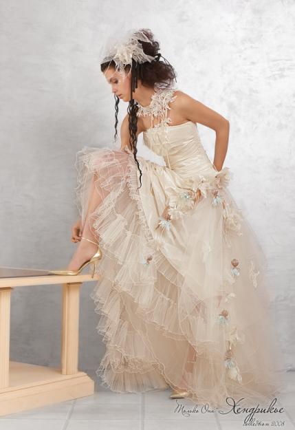Именно в фасоне юбки свадебного платья часто состоит индивидуализм невесты. Немного отлично взятых элементов юбки, которые в отдельности совершенно нечего не значат, могут создать пропасть между достаточно скромным нарядом и свадебным платьем "Принцессы". Любая юбка может увеличить вашу фигуру зрительно, создать силуэт свадебного наряда по объемнее. Очень популярный вид - турнюр (юбка с более объемной частью взади, у пояса). Множество слоев материала собраны в задней части юбки под первым слоем ткани и скрепляются несколькими кнопками или небольшими крючками, или же специальная подушечка прикрепляется сзади юбки - и вы становитесь пышной красавицей в турнюре. Можно дополнять юбку и другими подобными элементами: небольшими или крупными разрезами и различными складками,поэтическими волнами драпировки и красивейшими оборками.