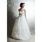 Украшения на таком платье подобны лазури и безе на свадебном торте. Правильно подобранное украшение будет делать ваш наряд очень индивидуальным и красивым. Девушки во все времена всегда украшали свои платья. Королева Виктория, к примеру, больше всего любила украшать свой туалет живыми цветами. С того времени на всем протяжении веков люди считали, что чем более искусно украшено свадебное платье, тем богаче дама, носившая этот наряд. Сейчас огромную ценность представляет хорошее качество, а не количество подобных деталей. Оригинальная вышивка и отделка бисером и пойетками внешне обогащают любую ткань. Маленькие переливающиеся элементы и разноцветные каменья пришиваются к наряду, добавляя блеску. Бахрома, стеклярус и разноцветный бисер, рассыпанные по свадебному платью, могут превратить любую невесту в настоящую королеву.