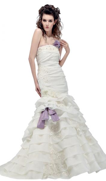 Такое платье напоминает прописную букву «А». Умело подчеркивая грудь, оно постепенно расширяется книзу. Юбка обычно пышная, а покрой цельный. При чем можете подбирать топ и юбку отдельно, что сделает ваш образ еще более оригинальным. Этот наряд очень универсален и подойдет для любой фигуры. Невысокую невесту сделает выше, а полненькую – стройней. А если вы возжелаете скрыть крупноватость бедер, воспользуйтесь подъюбником на кольцах. Такое свадебное платье – классика современной свадебной моды. Диапазон тканей различен. Хотите больше натуральности, используйте шелк и тогда юбка будет плавно ниспадать. Ну, а если вам нужна пышность – тогда используйте тяжелые ткани для основной юбки и легкие (фатин, тафта) – для верхних слоев.