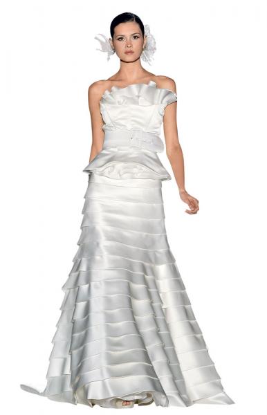 Если платье с пышной юбкой – ваша мечта, обратитесь за ее исполнением к коллекции Rosa Clara, лейтмотивом которой стали пышные, многослойные, объемные юбки из легких натуральных тканей на приталенных корсетах, выполненных в присущем марке стиле.