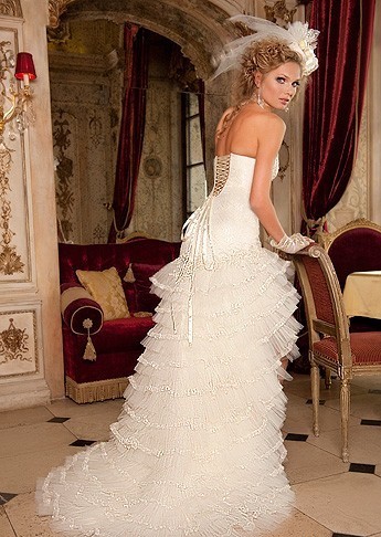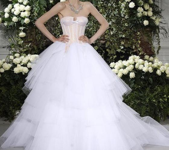 Если вы хотите подчеркнуть свои формы, добавить им объем, отдайте предпочтения пышным платьям, корсеты которых украшены жемчугом и сборками.