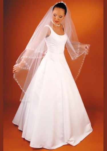Затем нужно выбрать материал – сетка-фатин, тюль или любая другая прозрачная ткань. Шелк, кружево или атлас придадут вашей фате оригинальности, а украсить ее можно вышивкой, жемчугом или стразами.