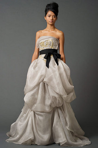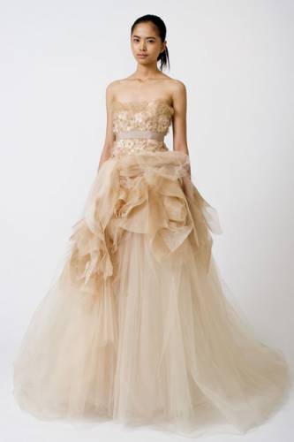 В этом свадебном сезоне особо актуальным являются драпировки и «воздушные» ткани и в платьях Vera Wang конечно же отражены эти тренды.