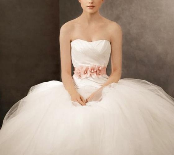 Во-вторых, все свадебные платья Vera Wang, фото которых можно увидеть на нашем портале, шьются из эксклюзивных тканей: шелк silk Radzmere, шелковая тафта, сатин Duchess satin и другие материалы, достойные уровня haute couture.