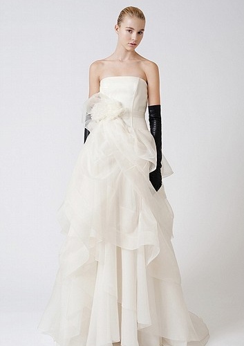 Начну с самого приятного, с коллекцией «White by Vera Wang» 2012. А теперь главное, это коллекция не класса люкс, а более массовая и доступная, но несмотря на это платья отвечают дизайнерской эстетики Vera Wang. Платья теперь станут доступны очень многим невестам. Ценовая категория этой коллекции от 600$ до 1 400$ (20 000 – 50 000 рублей).