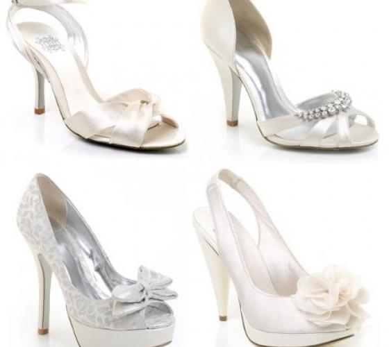 Что касается модели, то она зависит от длины и фасона платья. Броские туфли на платформе или танкетке будут беспроигрышны в сочетании с коротким свадебным платьем, ставшем полноценным хитом в 2011 году. Лучше всего на танкетках смотрятся миниатюрные невесты небольшого роста – возвышают над гостями и подчеркивают осиную талию. Также, с коротким свадебным платьем будут смотреться легкие туфли или босоножки с открытым носком. Если у вас платье, которое скрывает ноги, то идеально будут смотреться туфли на невысоком каблуке.