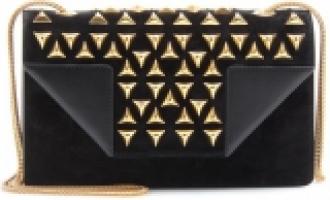 Модный дом Сен-Лорана выпускает роскошные и изысканные вещи. Яркий пример одной из них - сумочка Betty. Дизайнерский аксессуар небольшого размера с золотистой цепочкой смотрится очень аккуратно и изысканно. Сумочка выполнена из черной замши и декорирована крупными золотистыми треугольниками. Еще один оригинальный штрих данной модели - загнутые края из кожи превосходного качества. Сумка зарывается на магнитную застежку. Внутри на задней стенке есть небольшой кармашек.
