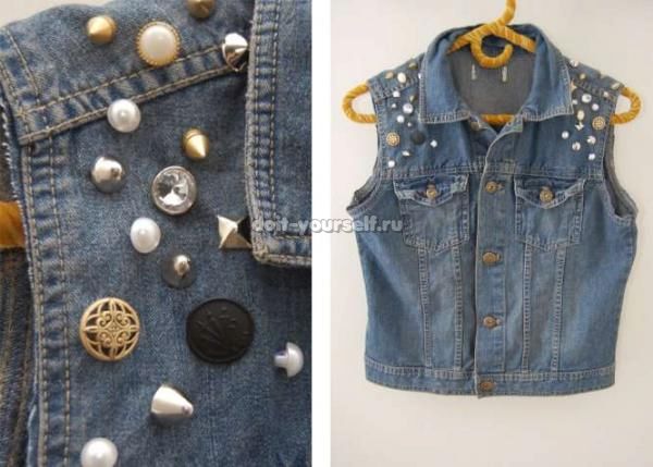 Модные джинсовые жилетки с металлическими клепками и шипами