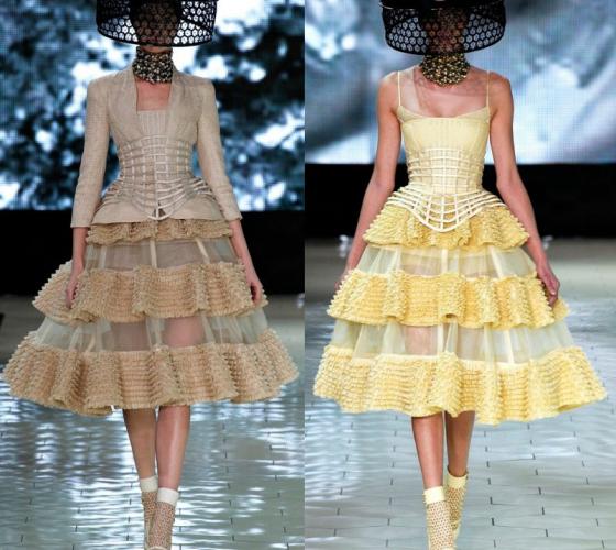 Большинство коктейльныех платьев было сконструировано по принципу: «Шире плечи, больше бедра», что подойдет далеко не всем женщинам. Но в целом каждое платье неповторимо. Финальная часть показа благодаря нескольким комплектам развенчала еще одно стереотипное мнение о сочетании черного и коричневого цветов. Примерив на себя подобный тандем, можно потеряться на фоне этих мрачных оттенков, но Джанини преподнесла все тонко и со вкусом.