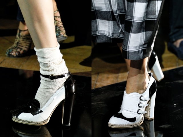 Остаются в списке модной обуви и туфли на высоком толстом каблуке. Не смотря на «высоту» такой обуви, она очень удобная и красивая. Gucci, Giuseppe Zanotti, Ganmarco Lorenzo, Yves Saint Laurent, Christian Louboutin и многие другие модные дизайнеры и «диктаторы» моды представили свои коллекции обуви, где можно было наблюдать туфли на высоких каблуках и в ярких оттенках сезона(см. видео яркие туфли на высоком каблуке).