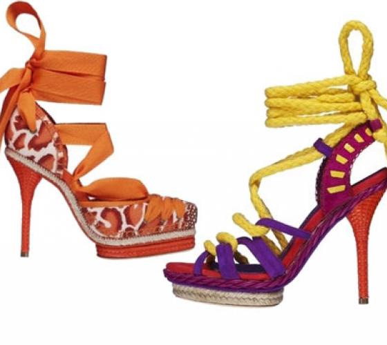 Обувь с очень веселым цветочным принтом была представлена на весенне-летнем показе Versus 2011 года. В новой коллекций Erdem можно найти стильные босоножки с разноцветными шелковыми лентами.