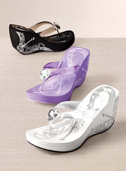 Выбор пляжной обуви достаточно широк. Самые, пожалуй, известные пляжные тапочки – это сланцы. Свое название они получили в честь одноименного города, где производили первые советские шлепки. Сланцы фиксируются на ноге благодаря перемычке между большим и вторым пальцем. Существует и такая разновидность, когда большой палец как бы одевается в «петлю». Ходить в них по пляжу или заходить в воду не рекомендуется, потому что нагрузка на стопу распределяется неравномерно за счет того, что фиксация происходит только впереди стопы и между пальцами. Эта обувь считается недолговечной, поэтому ходить в ней можно на ровных покрытиях – на асфальте, по кафельному полу в бассейне и так далее.