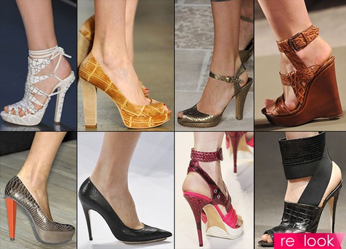 Какая обувь будет в моде летом 2011 Трендом сезона весна-лето 2011 стала широкая полоска. Эта новая тенденция не обошла стороной и обувь. Особенно весело смотрятся стильные серебряные туфли на высокой платформе в черно-зеленую полоску. Да и от плетеных босоножек на высокой платформе с каблуком в серебряно-оливковую шашечку глаз не оторвать. |