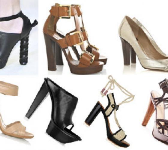 Туфли на толстом каблуке давно пытаются прорваться в гардеробы модниц и в сезоне 2013 снова попытаются это сделать. Немного изменился вид каблуков. Они стали наборными, часто обтянутые кожей, тканью, гармонирующей с цветом обуви. Кроме необычной формы и выдающегося внешнего вида, каблук столбик является очень устойчивым, а значит и туфли на таком каблуке очень удобные. И в этом их главное отличие от других каблуков.