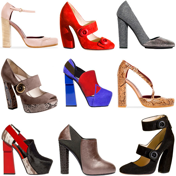 Помогают им в этом коллекции модных домов Aperlai, Fendi, Burberry Prorsum, Nina Ricci, Prada, Barbara Bui, Christian Louboutin, Marni и другие. Стильные туфли (на толстом высоком каблуке, широком каблуке) как нельзя лучше подходят к прохладным или мокрым погодам, особенно если они на платформе. Но ожидаемой «серости» в этой обуви вы не найдете.