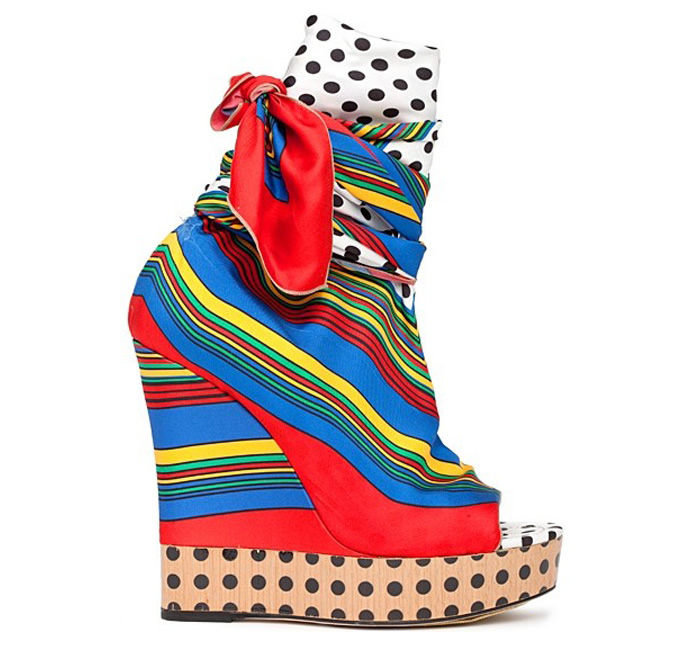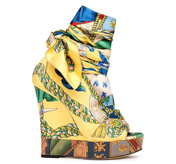 Коллекция обуви D&G весна-лето 2012 очень хорошо сочетается с одеждой. Представленной на подиуме. Каждое платье, юбка, топ и шорты были созданы с использованием интересных платков. Поэтому неудивительно, что аксессуары и обувь коллекции включают в себя аналогичные конструкции.