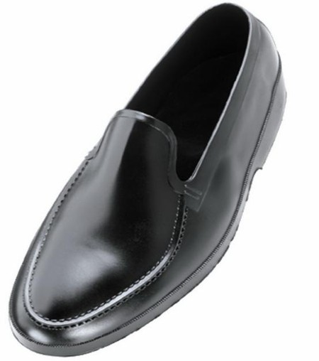 Специально для деловых мужчин дизайнерская компания Band of Outsiders изготовила модель «серьезных» галош.☺ Качественная резина, из которой, собственно, и изготовлена данная обувь, имеет специфическую окраску, напоминающую настоящие туфли.