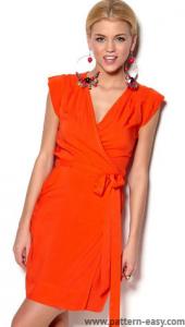 Давайте смоделируем выкройку такого запаха на примере одного из платьев, взятого из фотографий выше. И чего далеко ходить. Давайте возьмем предпоследнее платье из нашей фотогаллереи – чудестного апельсинового цвета – платье с цельнокроеным запахом.