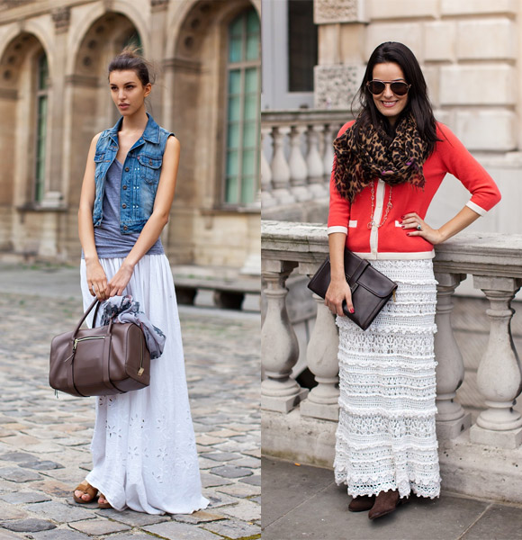 А еще длинная юбка позволяет экспериментировать с аксессуарами. Так, это отличный повод примерить шляпку (даже широкополую), надеть крупные, заметные украшения или длинные перчатки… Длинную юбку можно носить с абсолютно разными сумочками – как с клатчем, так и с большой сумкой (исключение – только спортивные сумки).