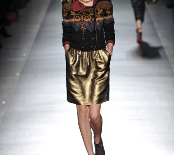 Символом одежды Etro и Etro обувь можно считать узор «пейсли» (он же – восточный огурец) в самых разных исполнениях и сочетаниях. Это – классический восток, особенно проявляющийся еще и в сочных темных цветах большинства моделей одежды. Очень ярко все перечисленные «признаки Etro» проявились в женской коллекции осень-зима 2011-2012, здесь много цвета, восточного орнамента, в целом коллекция очень смелая и женственная.